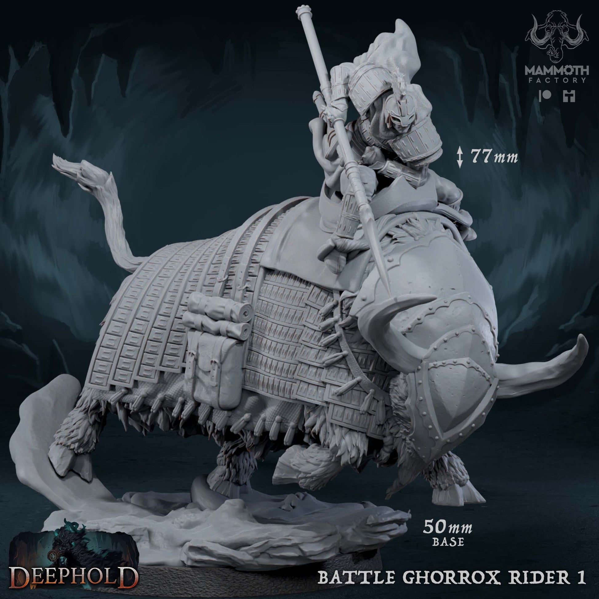 The Battle Ghorrox Warband are perfect miniatures to represent fearsome mounted soldiers for Dungeons and Dragons, Pathfinder, Daggerheart and other tabletop roleplaying games. Also a great monstrous cavalry warband for Tabletop Wargaming.