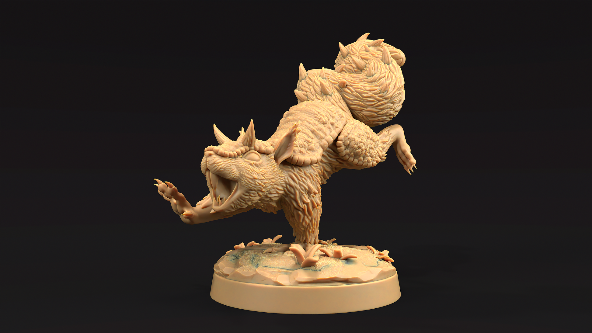 Within the treacherous expanses of the direlands, the Dire Squirrels defy nature’s hierarchy as formidable predators, their small stature belied by a voracious appetite for prey of all sizes. These miniatures would do well on any Dungeons and Dragons, Pathfinder, Daggerheart or other tabletop roleplaying game.