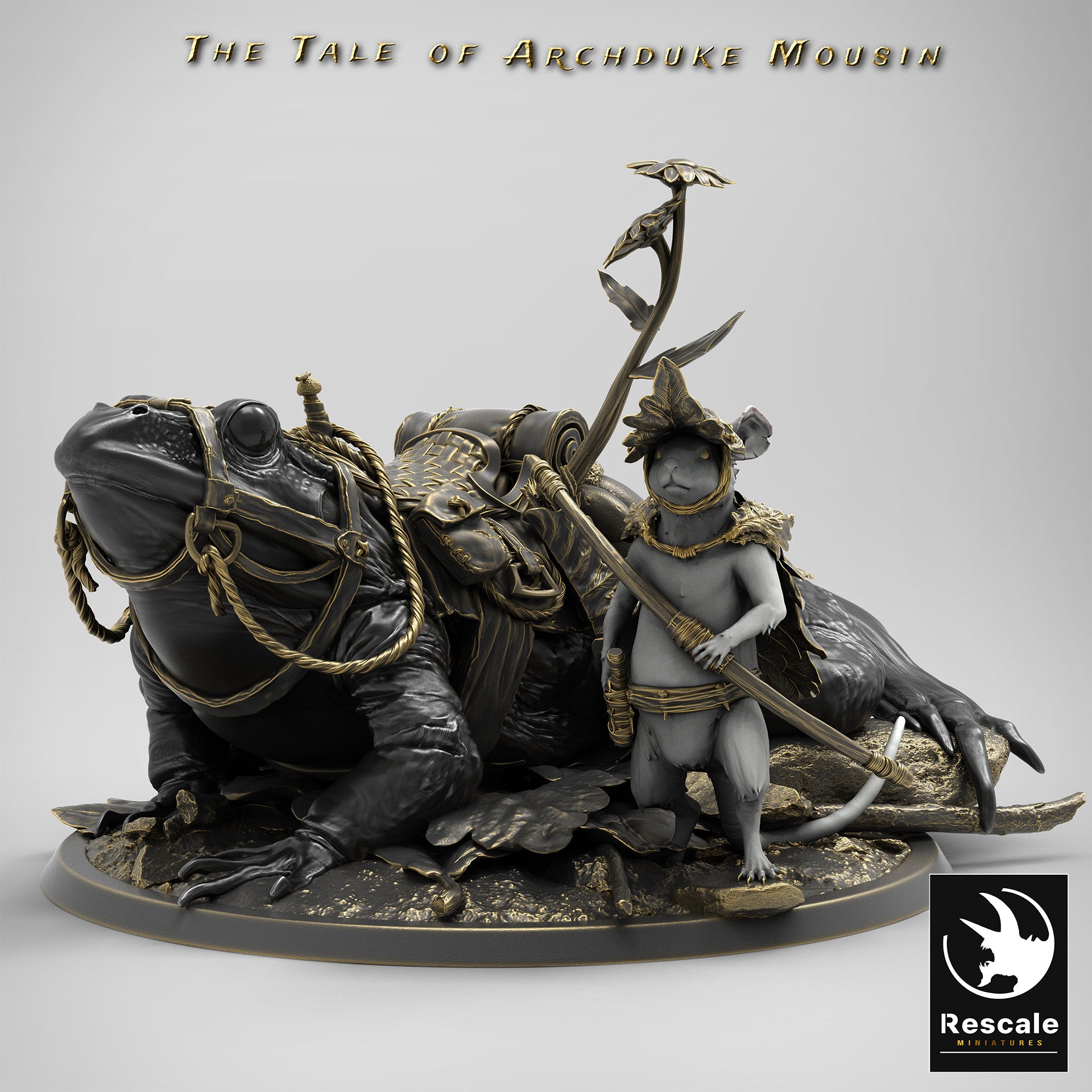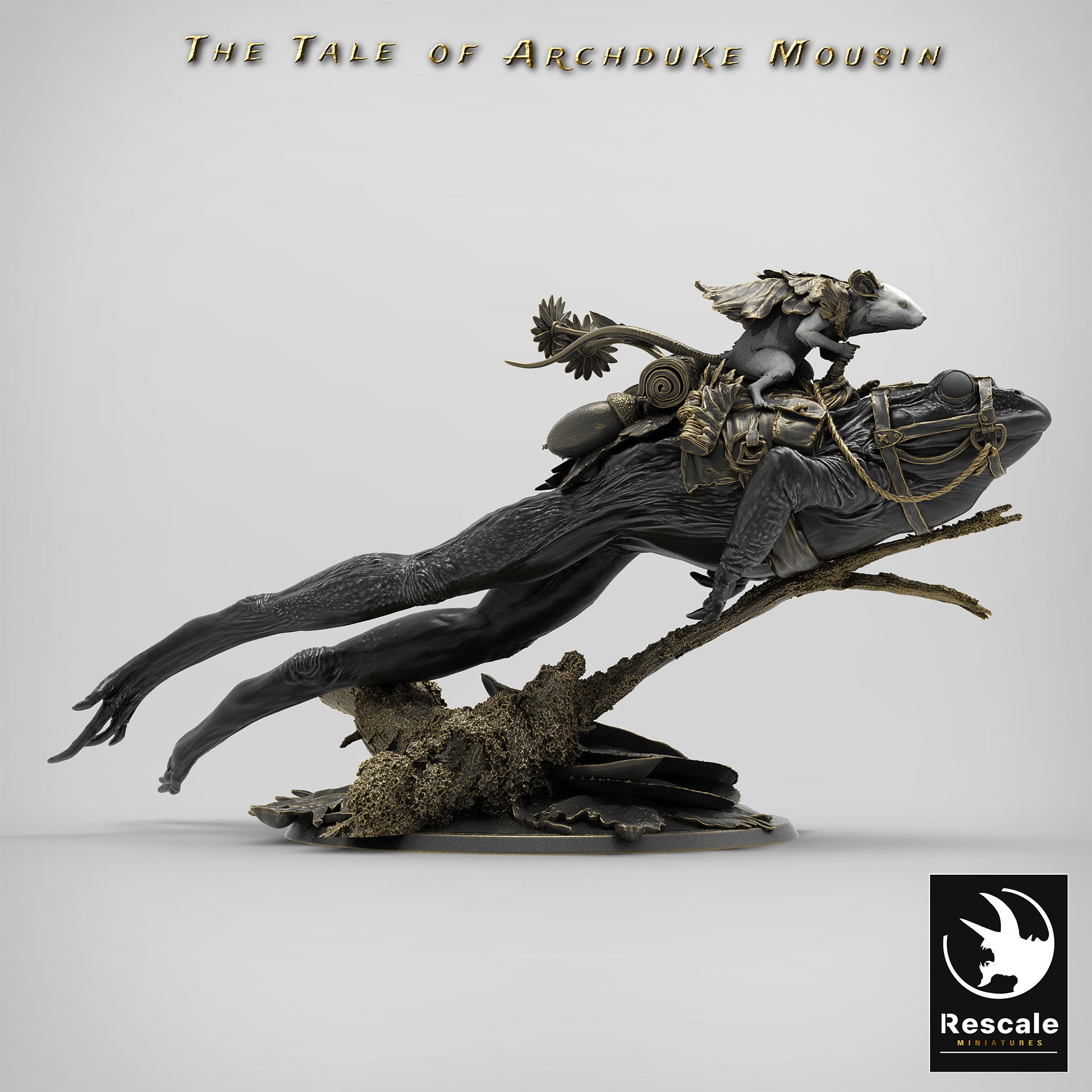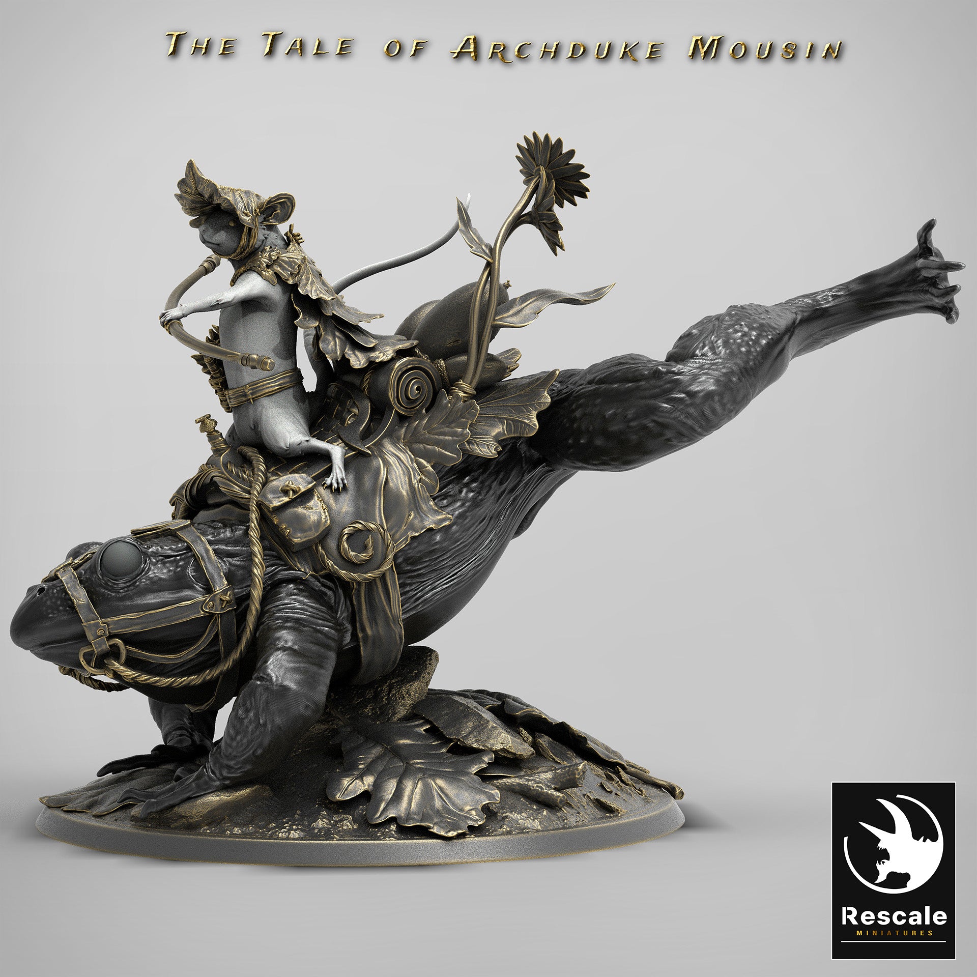These amazing frog riding mice make an interesting race for any table top role playing game. There are 3 types; Leaping, Landing and Standing. The base size for these huge miniatures is 3 inches.