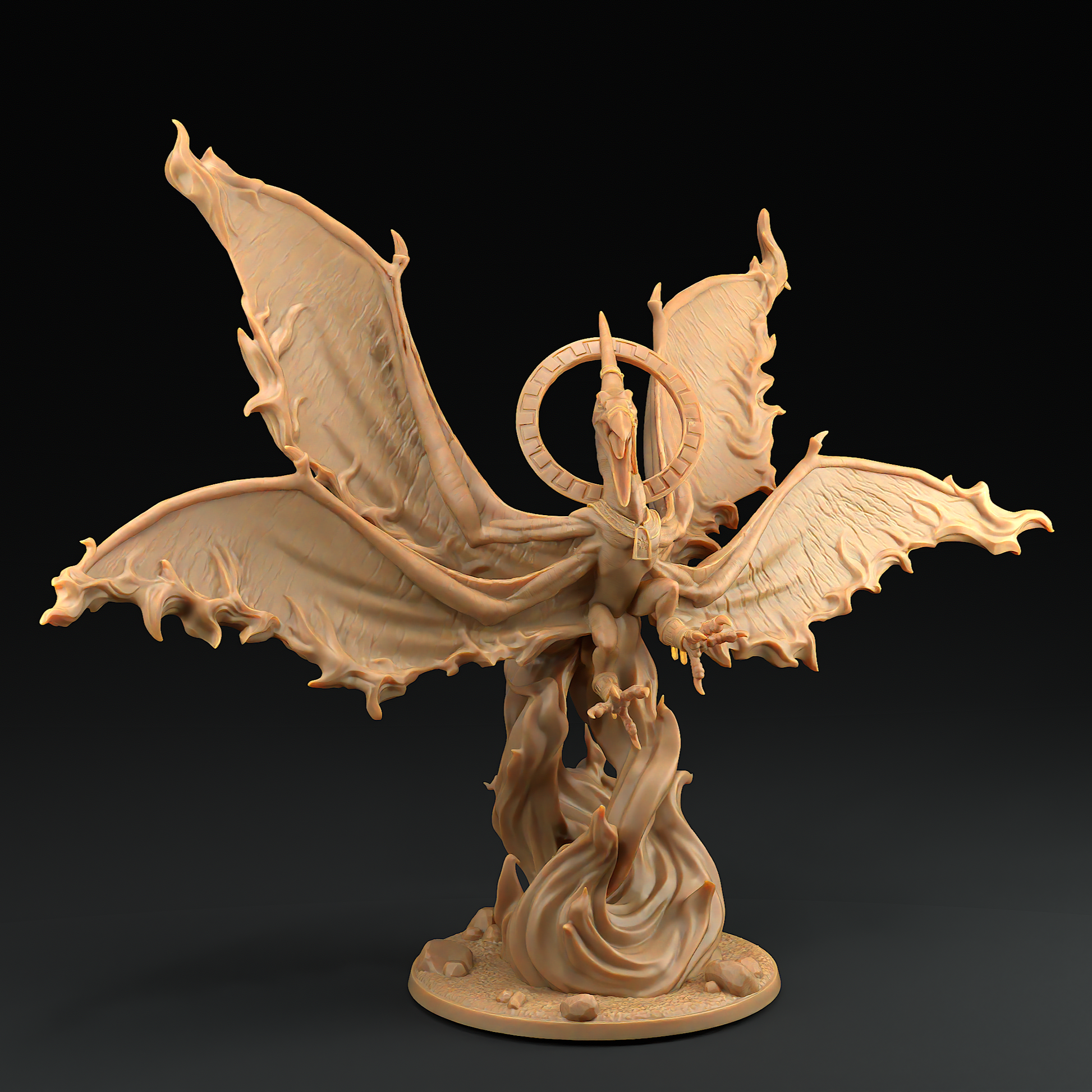 The God of the Sun is a gigantic pterosaur, double winged and wreathed in flame.