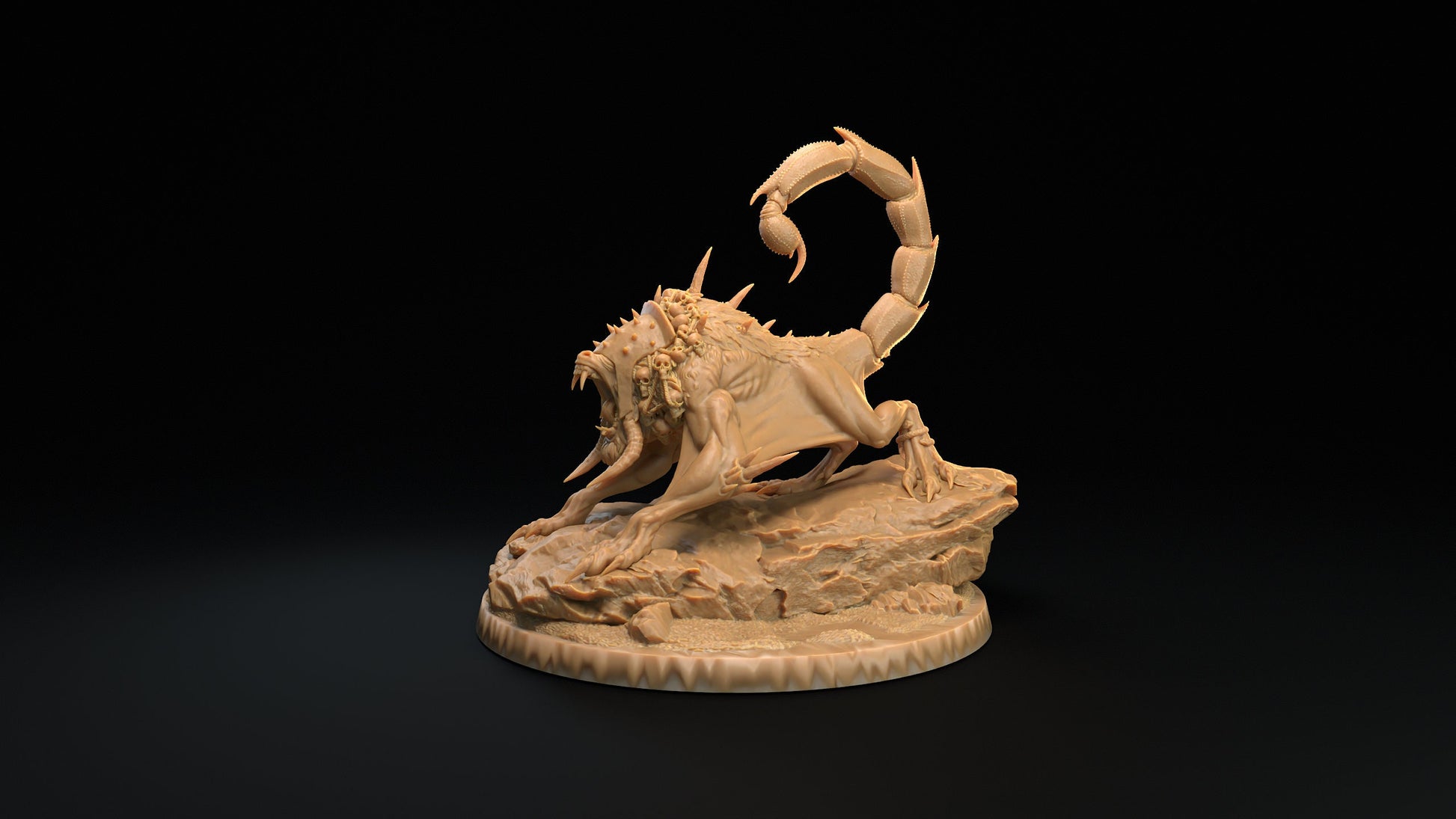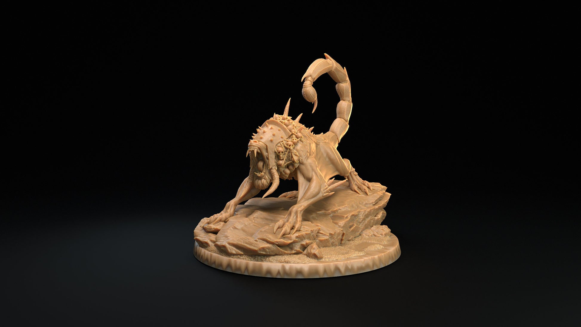 The Mandrilcore is a terrifying hybrid of baboon and scorpion making a fresh type of Manticore. It comes in armoured and unarmoured variants and is perfect for tabletop wargames or Dungeons and Dragons, Pathfinder or other tabletop roleplaying game.
