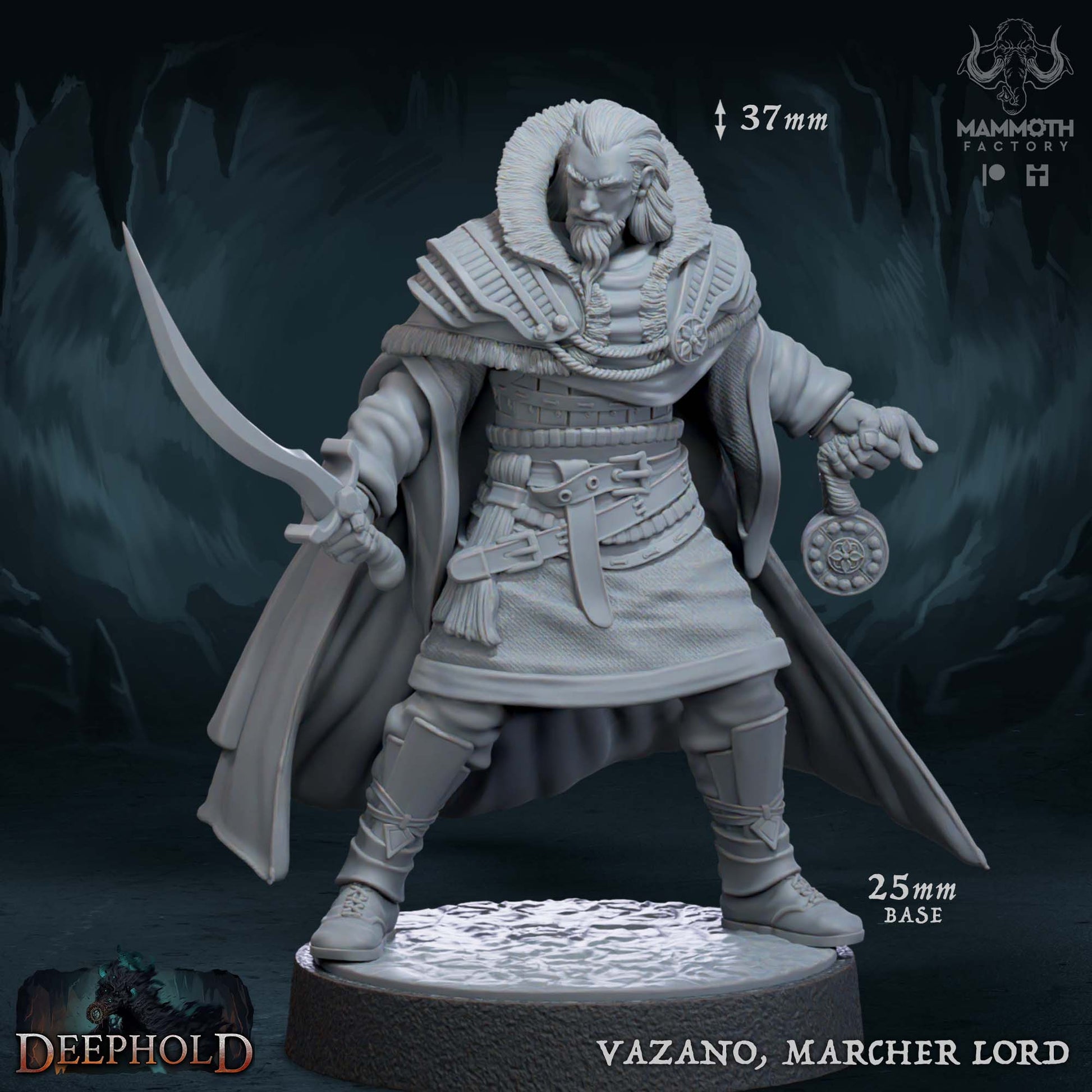 Vazano, Marcher Lord is a wonderfully characterful miniature. Perfect for Dungeons and Dragons, Pathfinder, Daggerheart and other tabletop roleplaying games. Also a great character for Tabletop Wargaming.